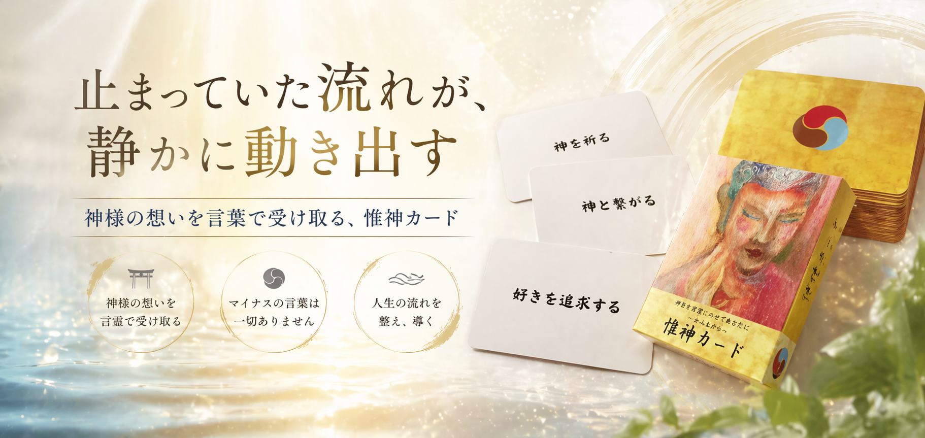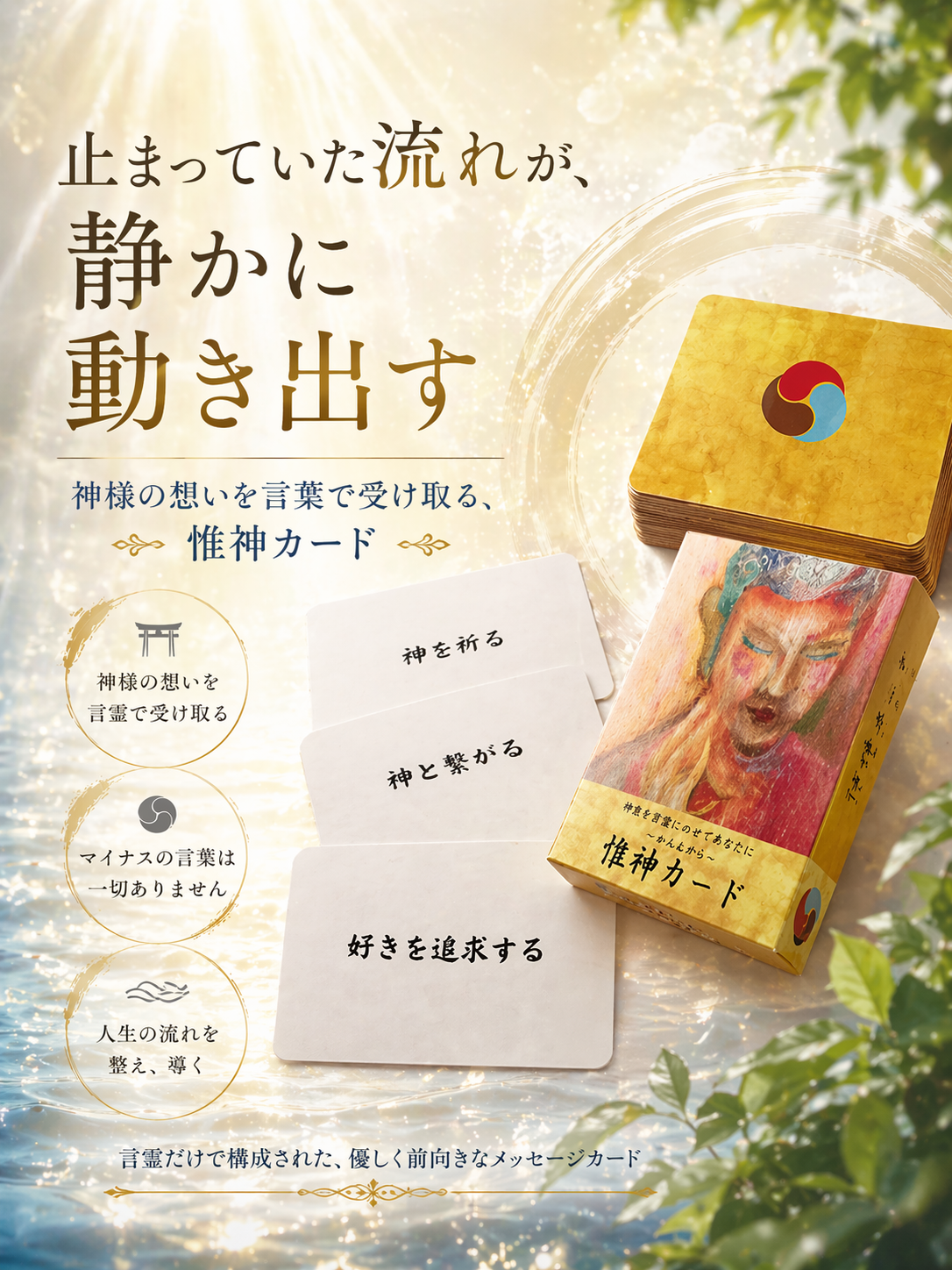 今のあなたに必要な神様からのメッセージ。36の言霊からなる神光メッセージです。ただいま、口コミで広がっていっております。カードの購入はこちらからご購入いただくか、惟神セラピストより購入が可能です。